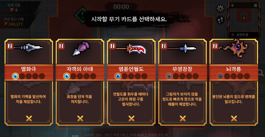 - 추천 무기 :: 염륜언월도 // 수리검 // 멸화극 // 활 (우선) // 나머지는 선택