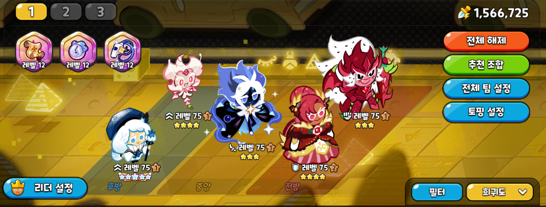 | 쿠키런 킹덤 마스터 1-1 ~ 1-5 [3별 클리어] 조합 (1) | 2023.09.11 |
