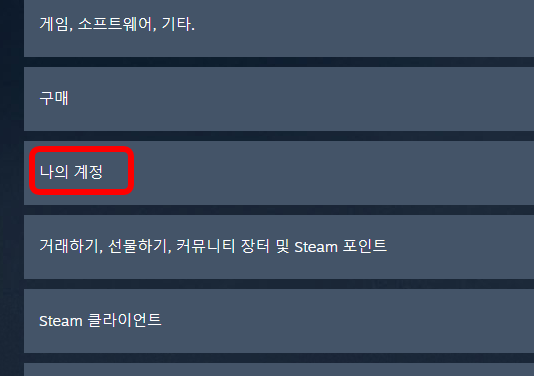 본인이 가입한 스팀 가드 종류에 따라 지원하는 서비스가 다릅니다. 하지만 어떤 방식인지 알아야하니 우선 고객지원 -> 나의 계정으로 이동합니다. 스팀 가드 뿐 아니라 대부분의 보안 설정은 모두 계정 탭에서 할 수 있습니다.